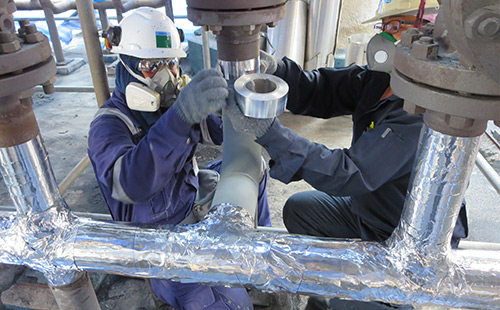 Trizashield is a highly cost-effective CUI protection that combines galvanic zinc, aluminum anode cathodic protection (CP) and corrosion resistant aluminium barrier for piping, vessels and equipment under insulation.